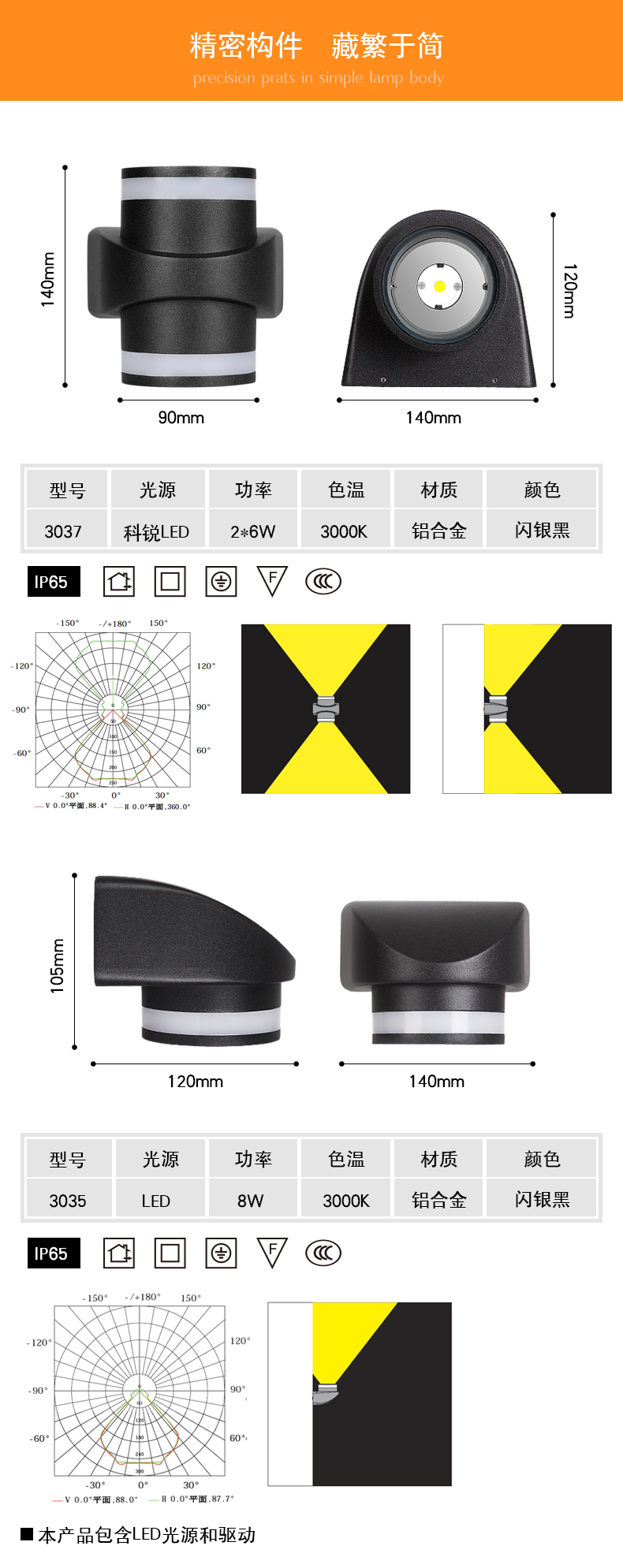 功率:CREE-COB  6W*2